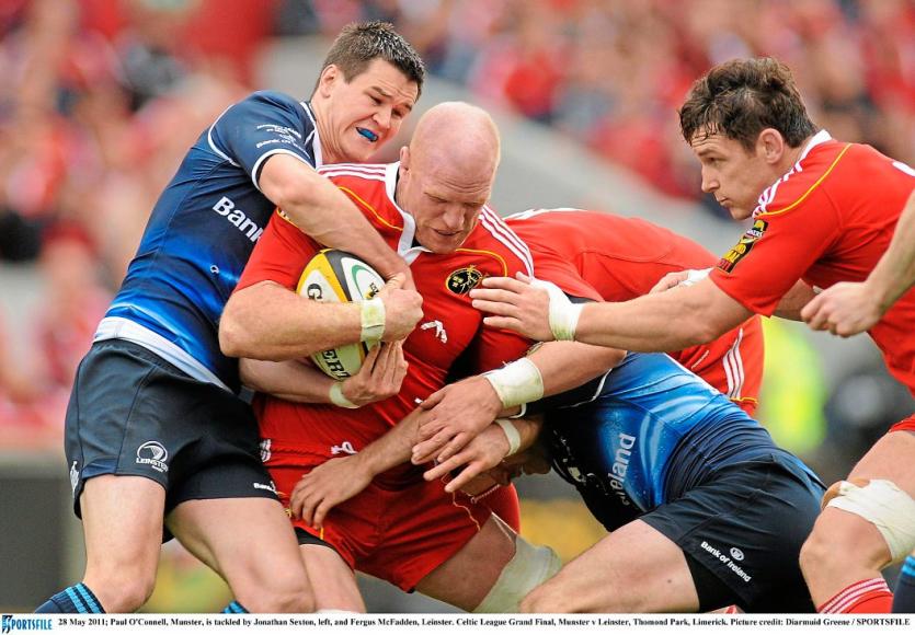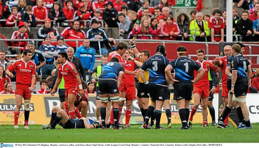 Leinster produced a stunning second-half comeback against Northampton last weekend to win the Heineken Cup and Joe Schmidt’s side came out with similar intentions after the interval this evening. Munster defended resiliently to prevent them from crossing the line early on when the visitors went through 24 phases, but it culminated in a second penalty for Sexton and a yellow card for Donncha O’Callaghan for not rolling away.