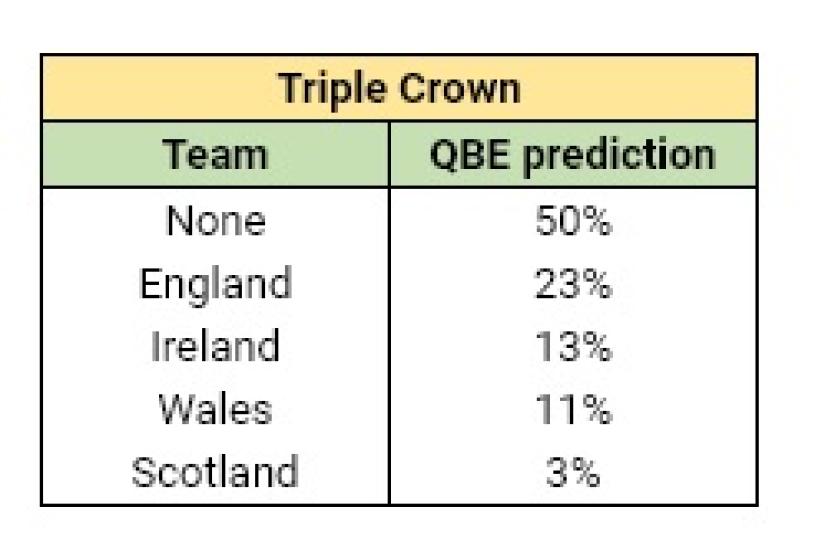 Ireland will need to beat England in the final round of the Guinness Six Nations if they are to win the tournament for the first time in three years, according to predictions by 'catastrophe planners' at QBE Business Insurance using a complex mathematical formula and computer model.