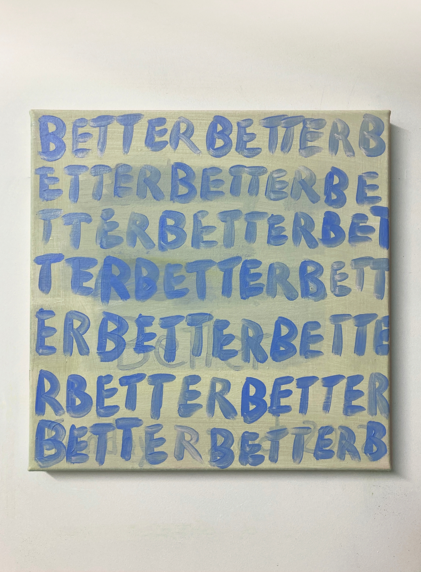 The repetition of the word ‘better' within the painting prompts contemplation of the choices artists make when selecting subject matter and striving for improvement.