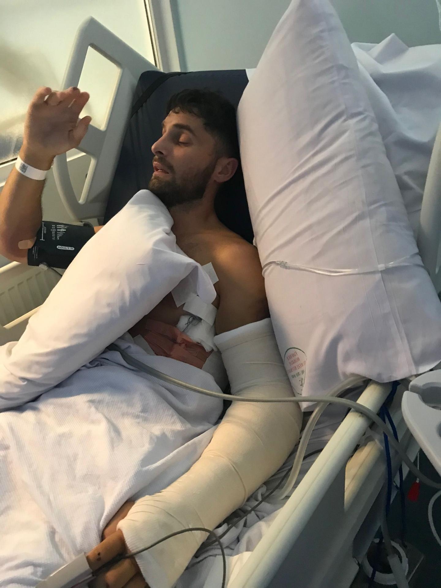 The pictures were taken in University Hospital Limerick two days after he was admitted in September of 2021. He was to spend eight days in hospital for injuries including a broken leg, arm, fingers, shattered ribs, punctured lung, severe bruising all over his body and underwent emergency surgery.