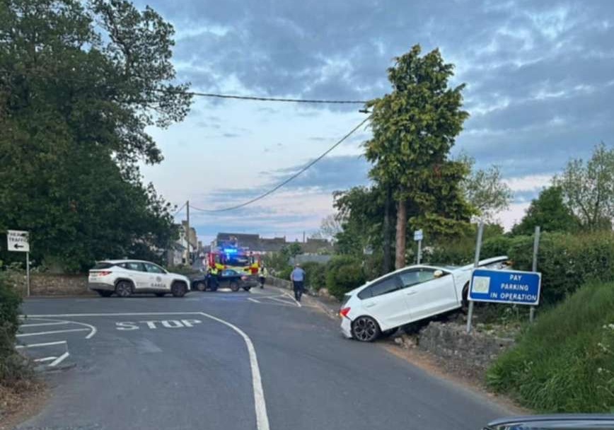 A car rammed off the road on the edge of Kilmallock town