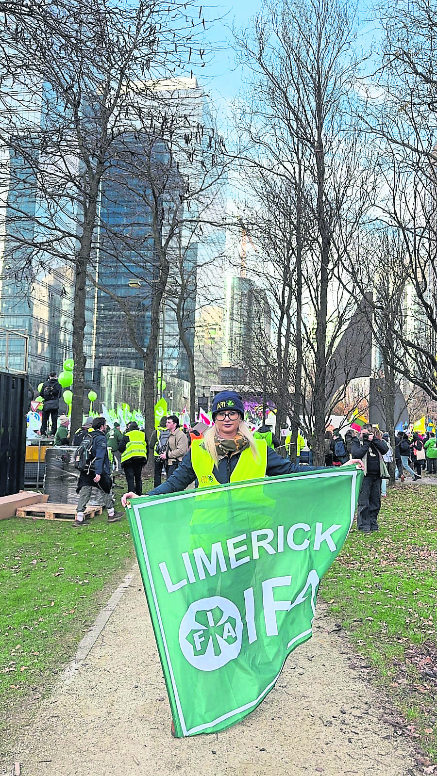 COUNTY IFA chairperson Louise Crowley represented Limerick farmers at a massive farmer protest in Brussels.