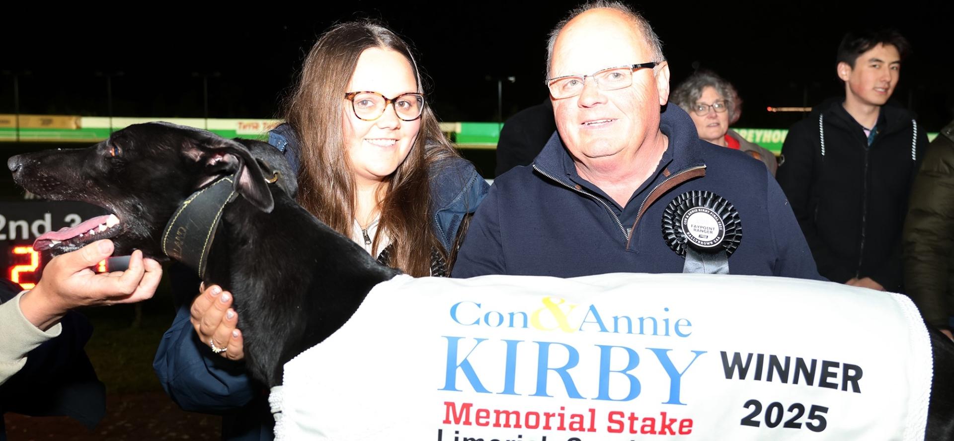 THE THE Con and Annie Kirby Memorial Stake final took place at Limerick Greyhound Stadium on Saturday night as the 2025 renewal came to a head and the night belonged to Faypoint Ranger as he completed a clean sweep in the Classic to secure the €80,000 winner’s prize. final took place at Limerick Greyhound Stadium on Saturday night as the 2025 renewal came to a head and the night belonged to Faypoint Ranger as he completed a clean sweep in the Classic to secure the €80,000 winner’s prize.