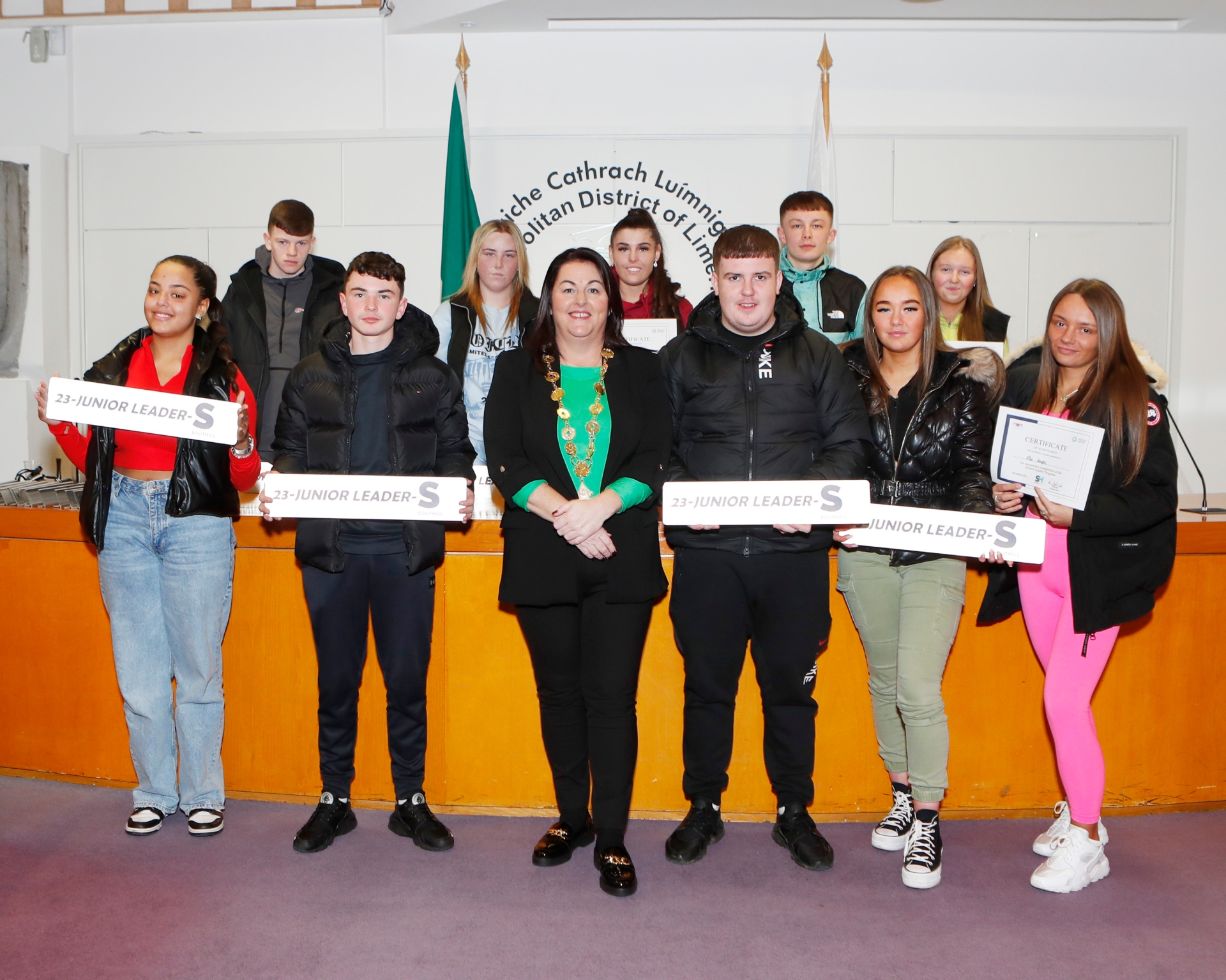 CERTIFICATES of achievement were presented recently to Limerick students as part of the Junior Leader Programme.
