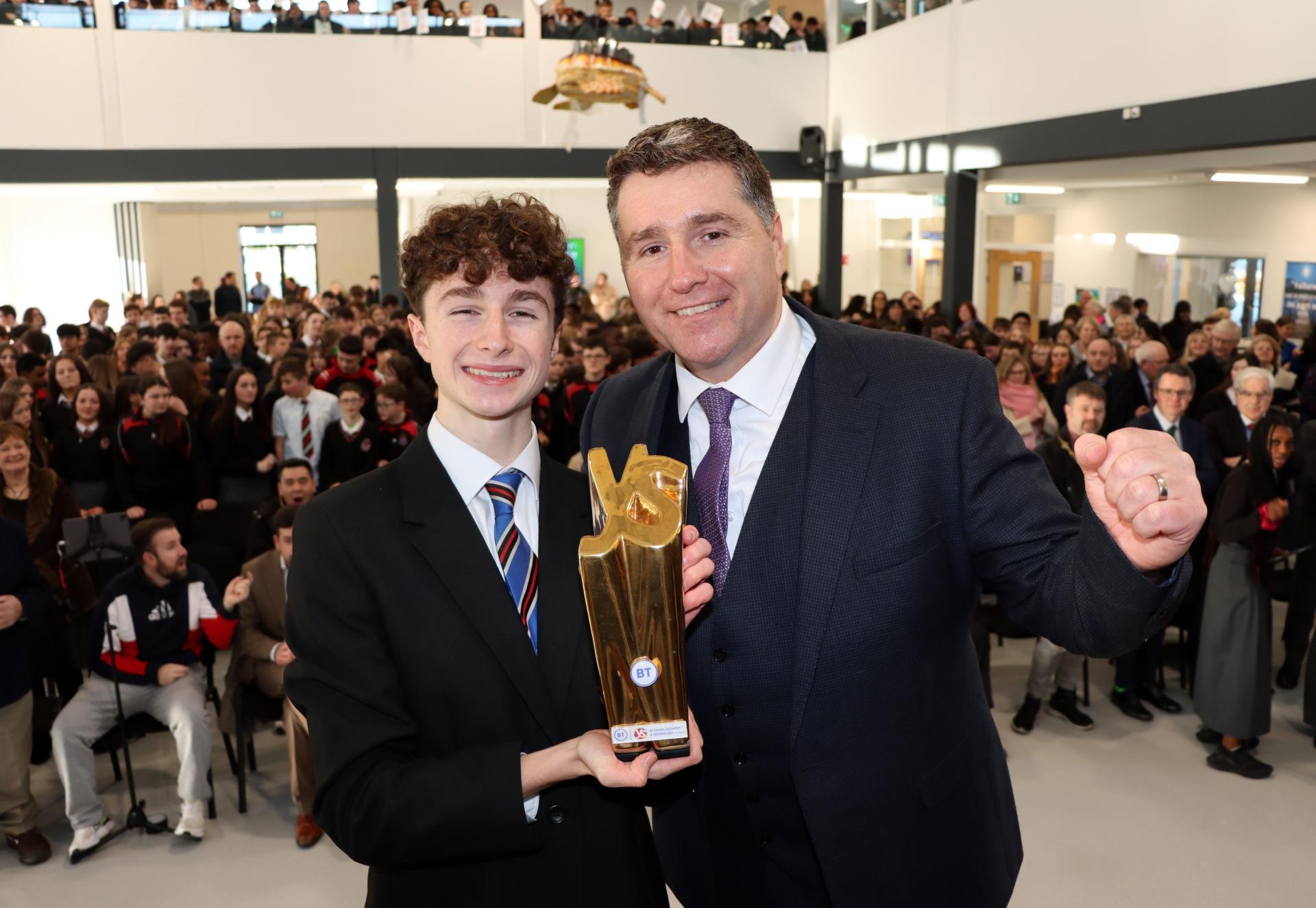 The 5th year Coláiste Chiaráin, Croom student won the competition on Friday evening with his project VerifyMe: A new approach to authorship attribution in the post-ChatGPT era.