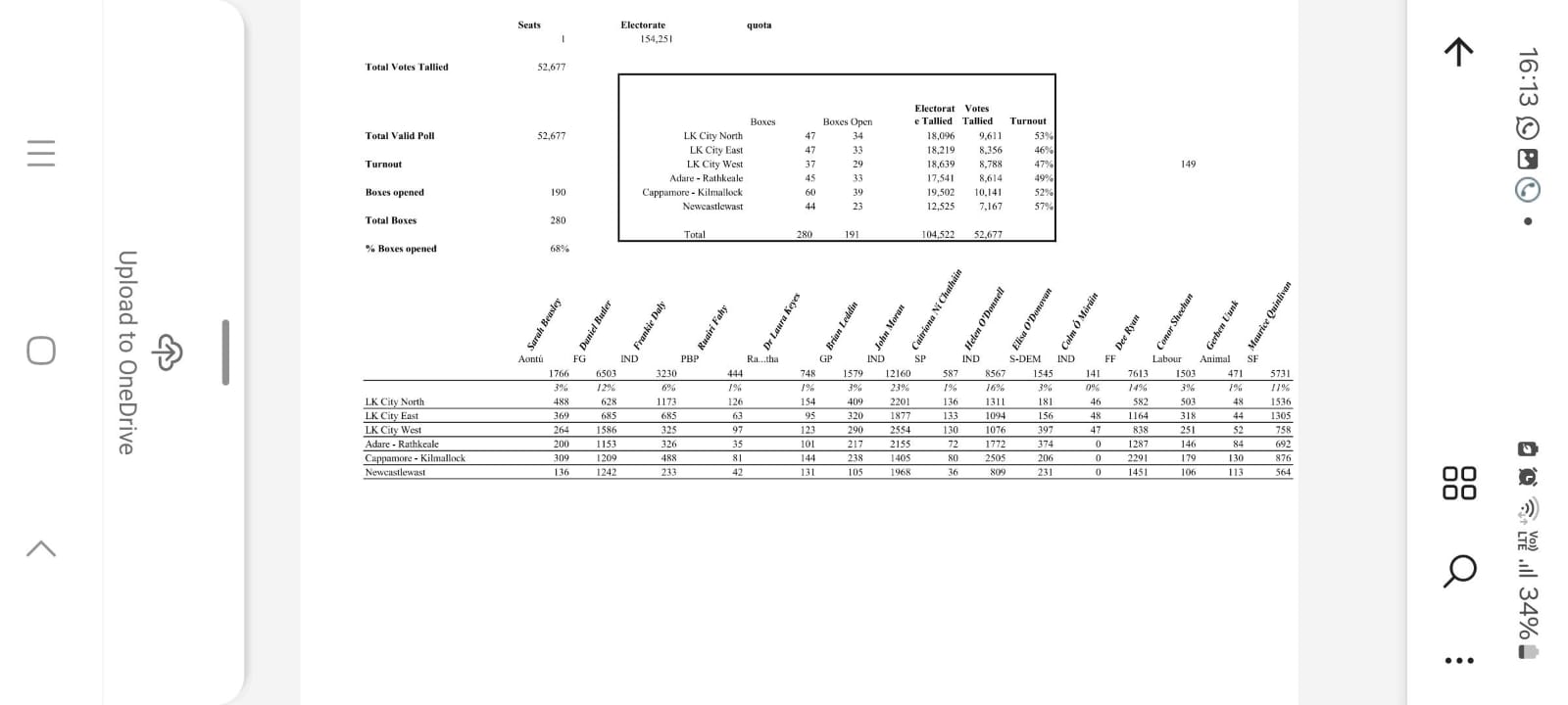 Mr Moran is in the Limerick Count Centre, but declined to comment to media earlier this Saturday afternoon.