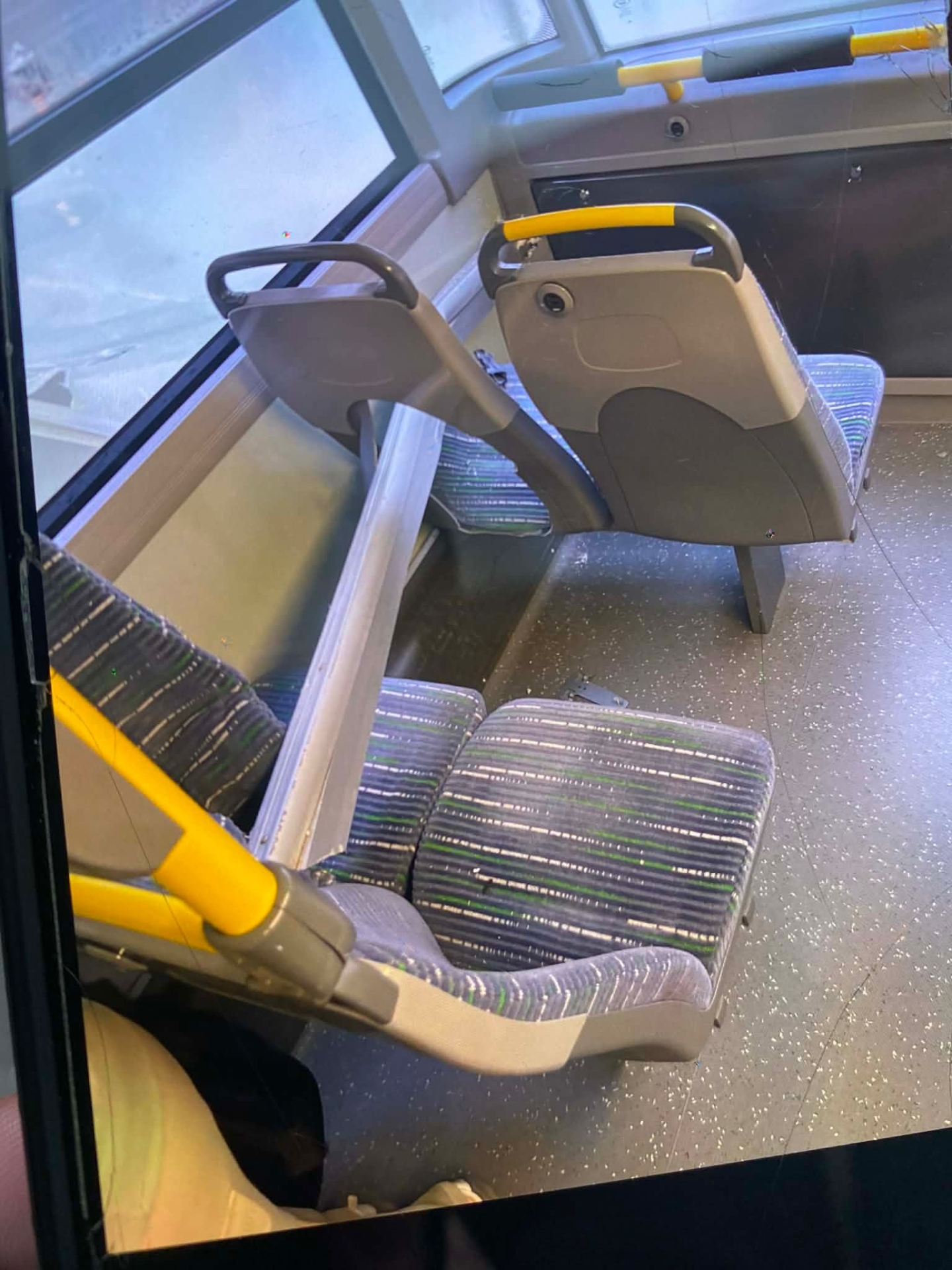 PASSENGERS on a bus bound for University of Limerick had a lucky escape this morning, as part of a van speared through the top level of the bus onto empty seats.