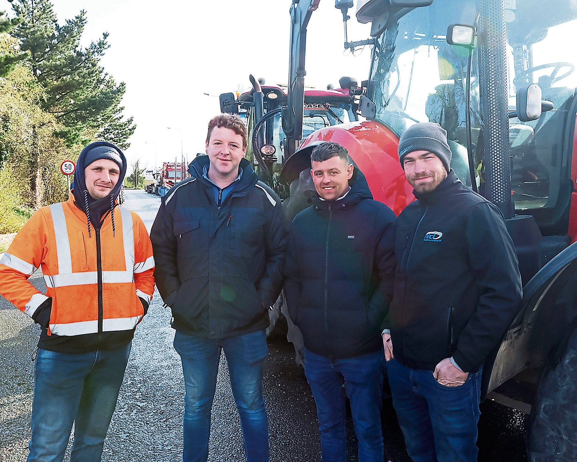 Below: Simon Curtin, John Michael Kennelly, Ger naughton and Conor Greaney attending the oil crisis demonstration in Foynes (Picture: Brendan Gleeson)