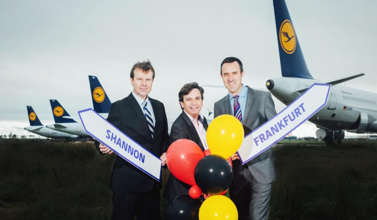 Lufthansa route: Matthew Thomas, Declan Power and Andrew Murphy of Shannon mark the announcement