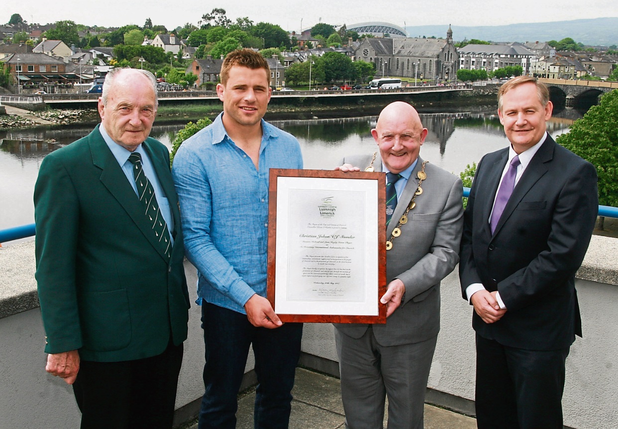 Mayor Kieran O’Hanlon has bestowed the Castleconnell-based rugby star with the title of inaugural honorary international ambassador for Limerick. This is for his “outstanding commitment, support and encouragement of the people of Limerick” and for his promotion of the region.”