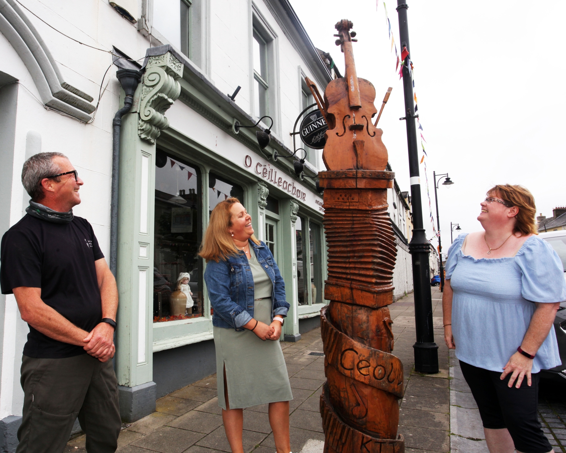 Alongside the two companion sculptures previously carved by chainsaw artist Will Fogarty, the sculptures are a commanding presence in the village and together sum up the community’s heritage.