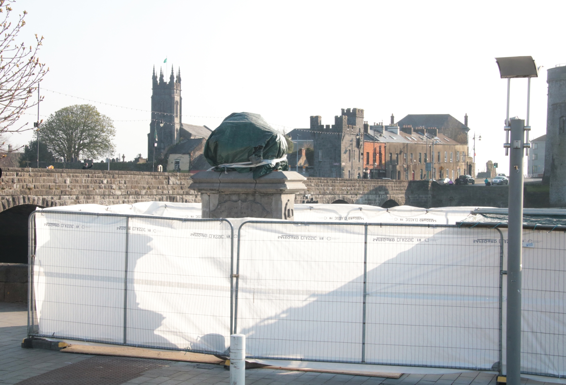 Engineers have moved in to Clancy’s Strand to begin the operation to restore the pedestal under the Treaty Stone, which has been weather damaged.