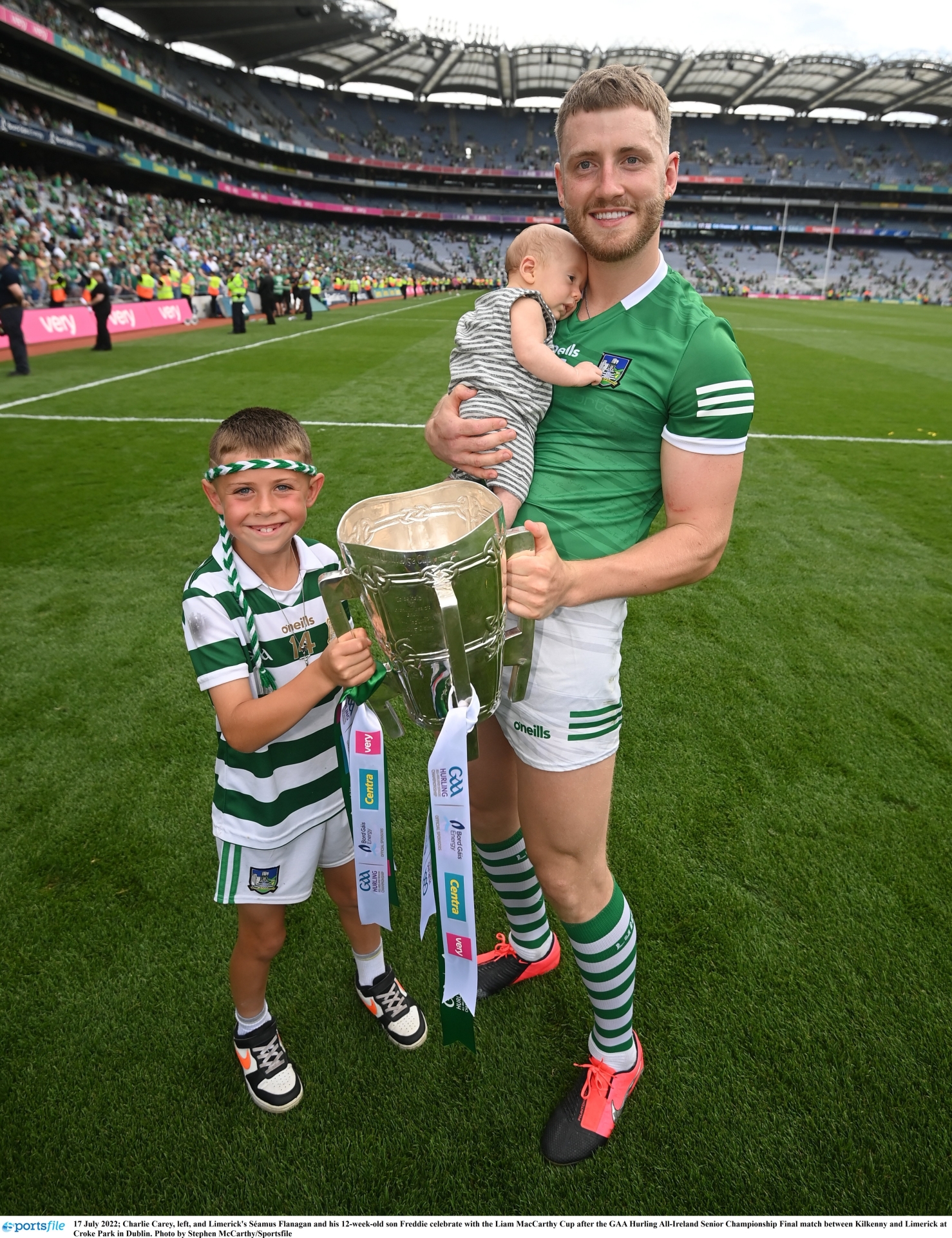 Both boys enjoyed celebrating Limerick's latest Liam MacCarthy win over Kilkenny on the Croke Park pitch with Seamus after the game in July.