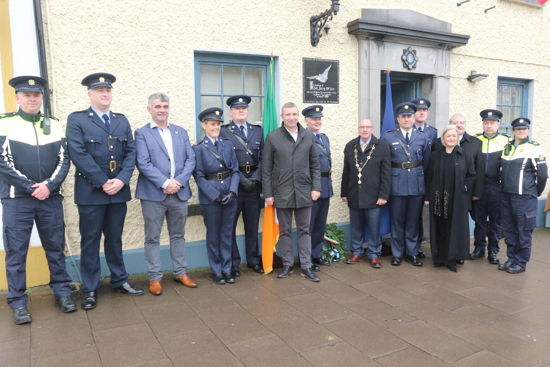 A floral wreath was laid outside Adare garda station as officers remembered their former colleague Jerry McCabe, who was murdered by members of the Provisional IRA in 1996.