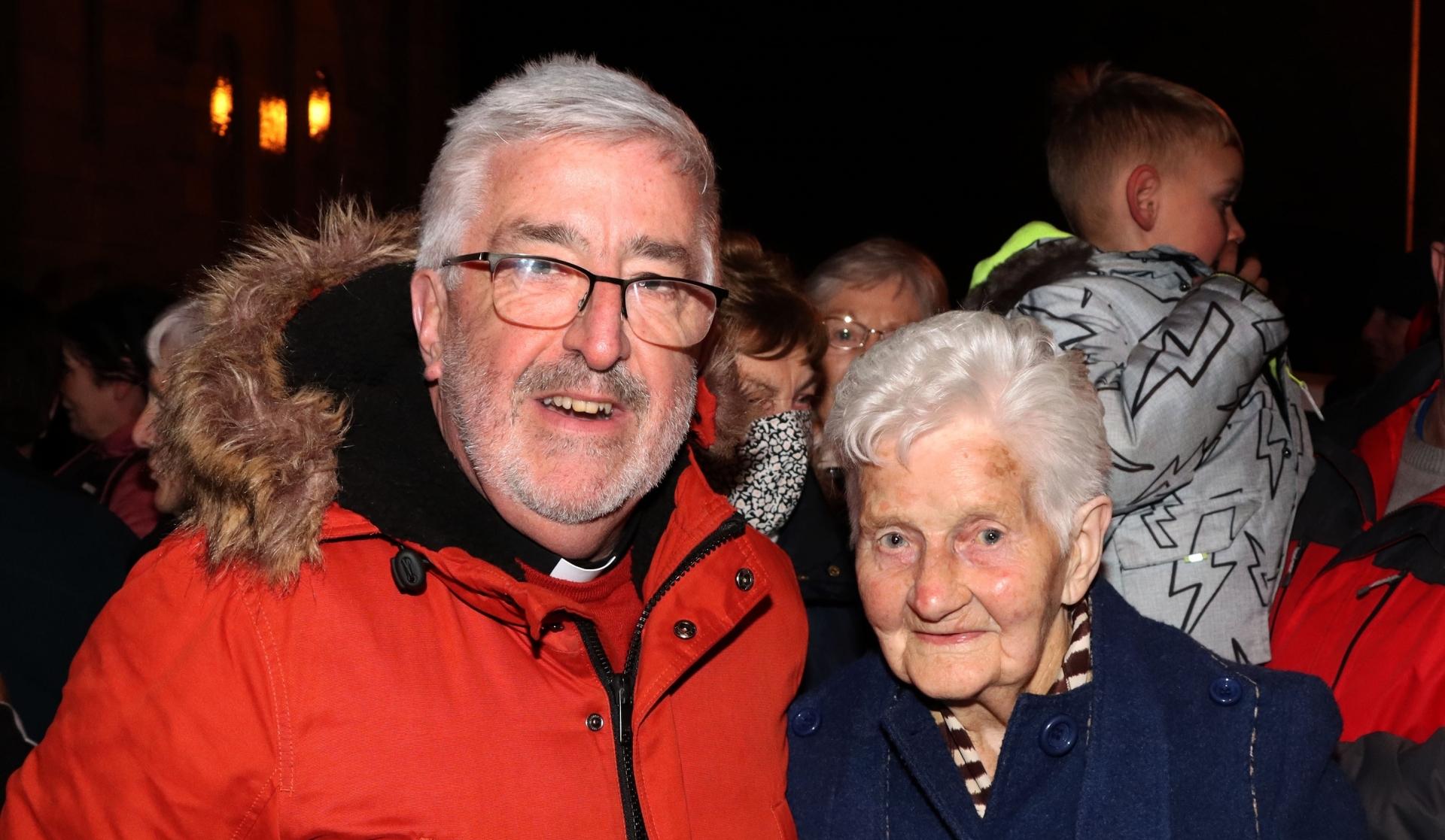 THERE WAS only one candidate to turn on the lights on the new Christmas tree outside St Mary’s Church in King’s Island in the city – and that was the parish’s oldest and most popular resident, Betty Lyons.