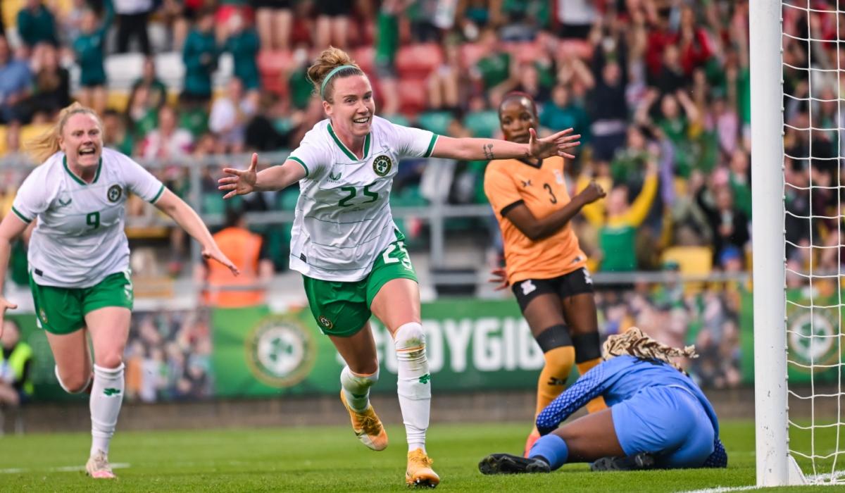 Claire O'Riordan celebrates after scoring the Republic of Ireland's second goal during the women's international friendly against Zambia at Tallaght Stadium | PICTURE: Sportsfile