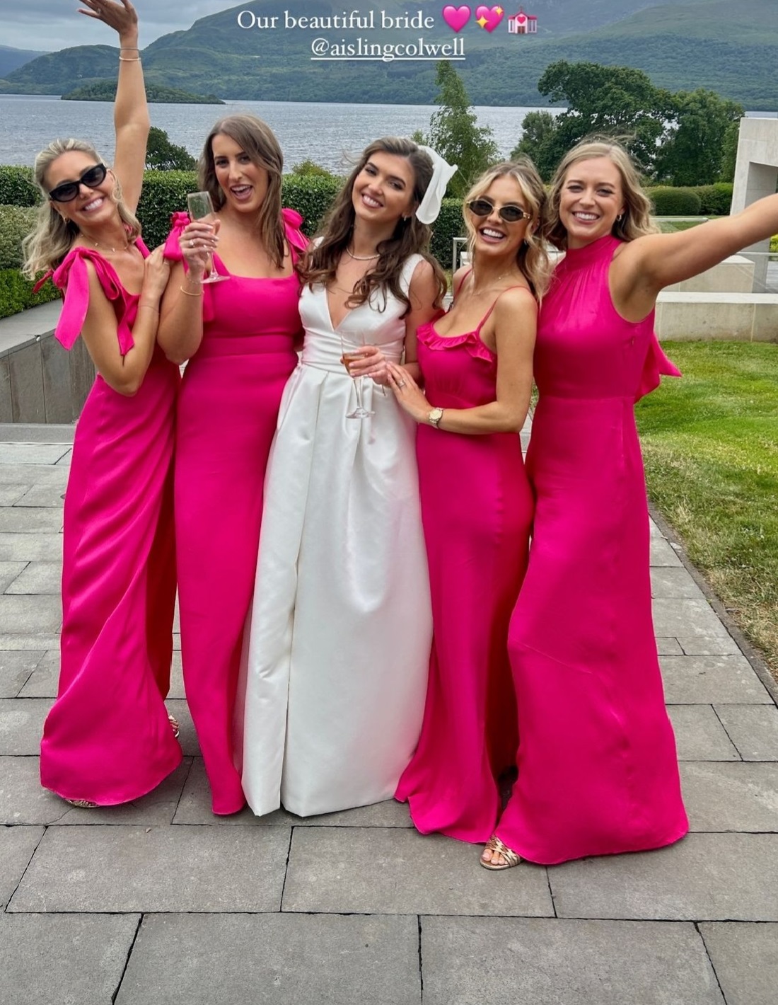 The bridesmaids wore hot pink dresses in various designs. Harriet opted for a gown with pretty bow ties on the shoulders while Joanna opted for a gown with spaghetti straps with a ruffled bustline, which skimmed her baby bump. The Derry girl and husband, Patrickswell man Conor, are due their first child later this year.