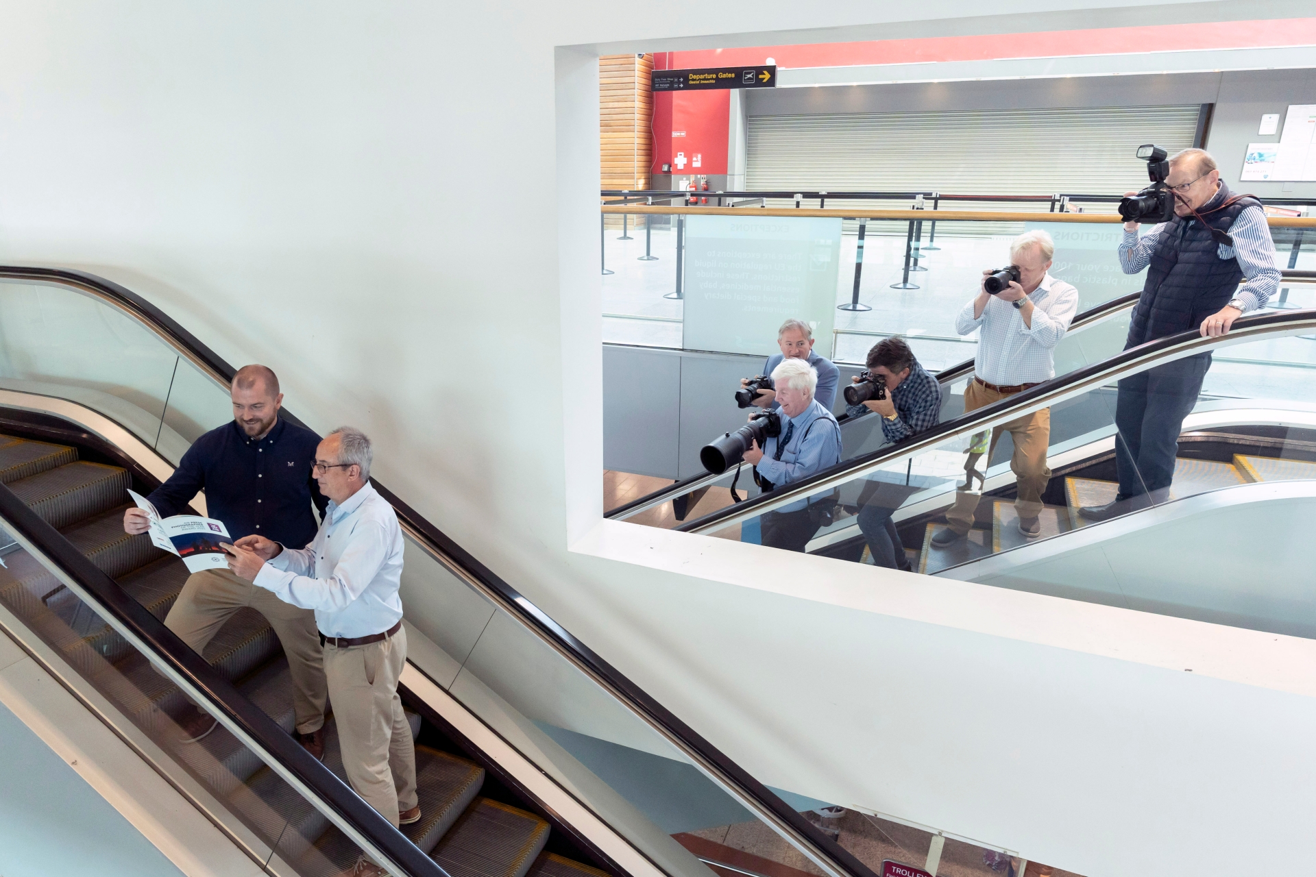 Photographers Ray McManus, Kieran Ryan Benson, David Branigan, president of Press Photographers Ireland, Niall Kearns, airport director, Brendan Gleeson, Liam Burke & John Kelly I PICTURE: Don Moloney