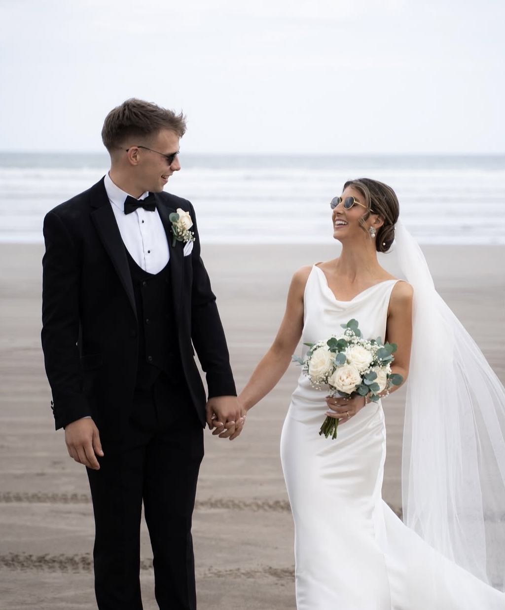They made the most of their surroundings, snapping some pics in sunglasses on the beach.
