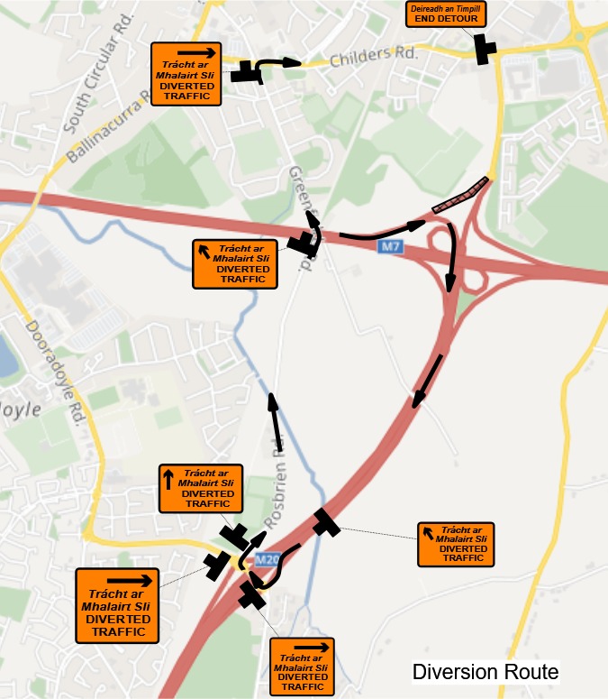 The M20, N18 and M7 will all remain open throughout as will the Limerick Tunnel.