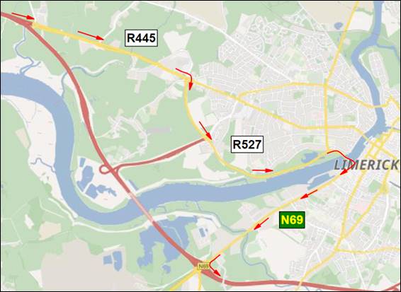 Traffic will be diverted at Junction 4 (Cratlomoyle) via the R445 (Ennis Road), R527 (Condell Road) and the N69 (Dock Road) before rejoining the N18 dual carriageway at Junction 2.