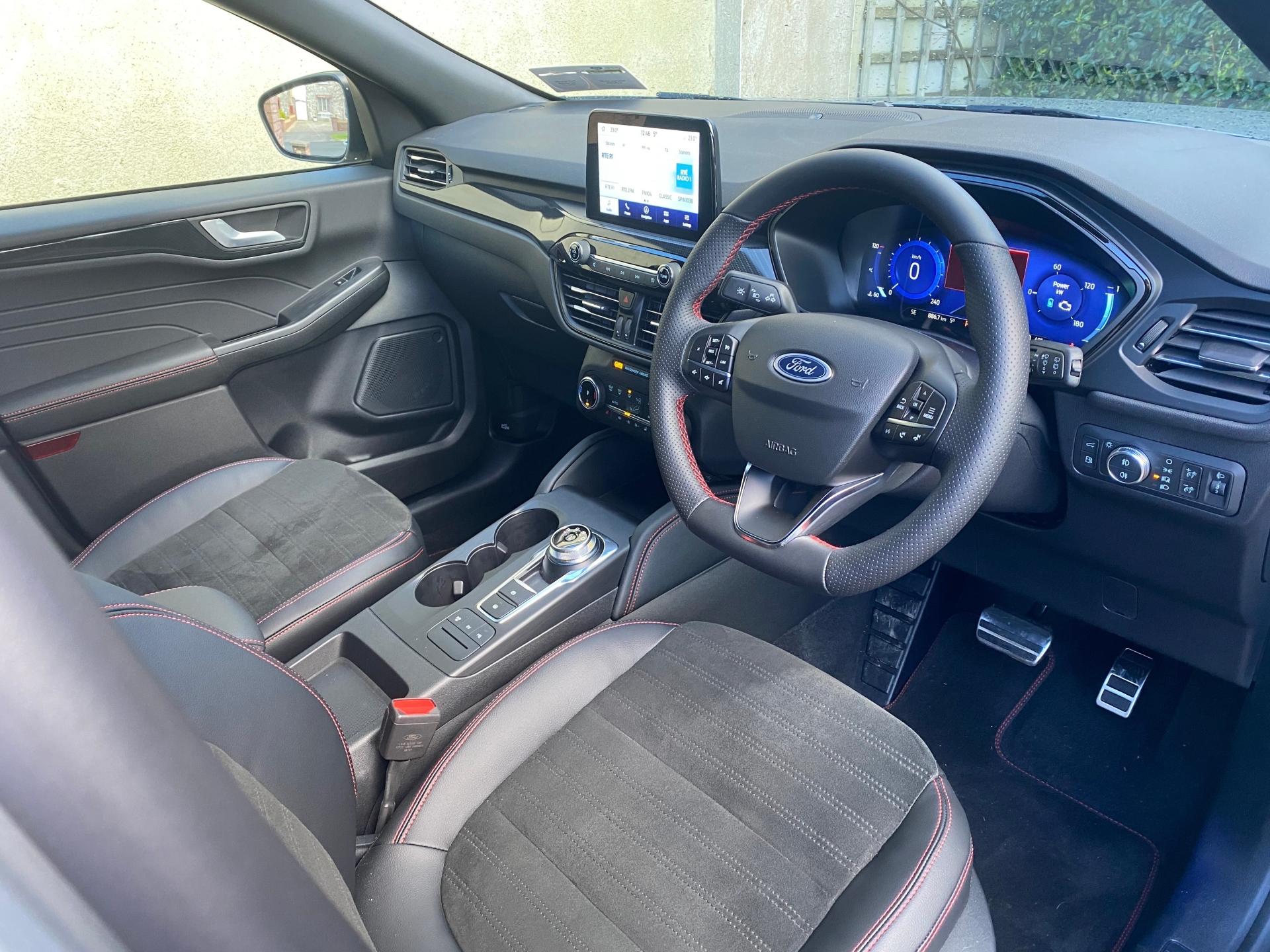 I was able to get a really comfy driving position with the 12-way power adjustments on the ST-Line sports seat. Seats were a mix of suede/leather type upholstery with lots of red stitching.