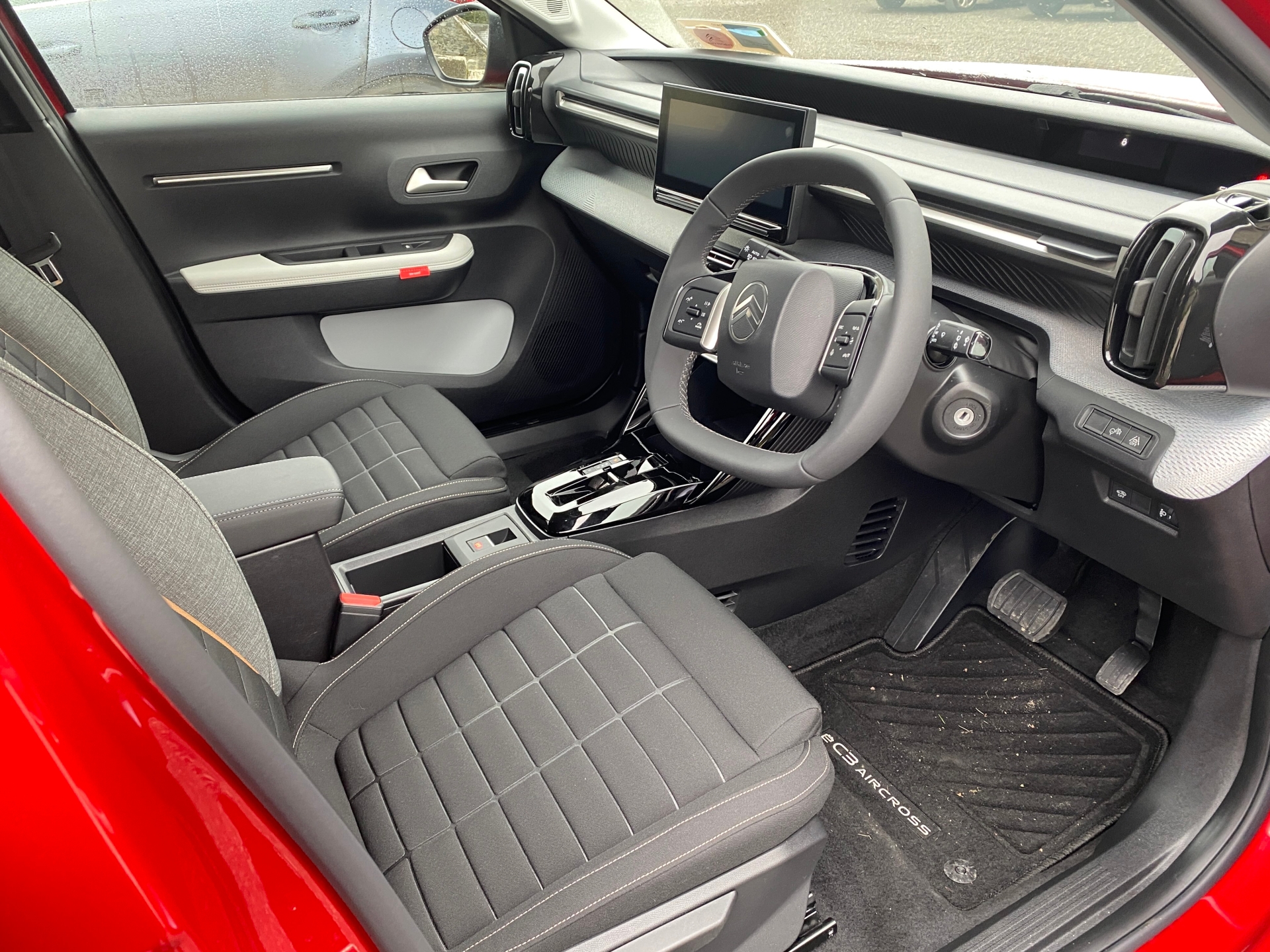 This third generation of the C3 Aircross has been restyled with a robust exterior design that includes sculpted and muscular front bumpers, larger wings, LED headlights, distinctive daytime running lights, rear parking sensors, a reversing camera, and 17-inch diamond-cut alloy wheels on the entry-level Plus grade. My car was the ePLUS version in a lovely exterior colour of Elixir Red, with a contrasting black roof, roof rails, pillars, and privacy glass. The second level, MAX, adds 3D LED rear lights, blind spot detection (which should also be in the entry-level grade), front and rear parking sensors, a white or black tinted roof depending on the body colour, and 3D Navigation.