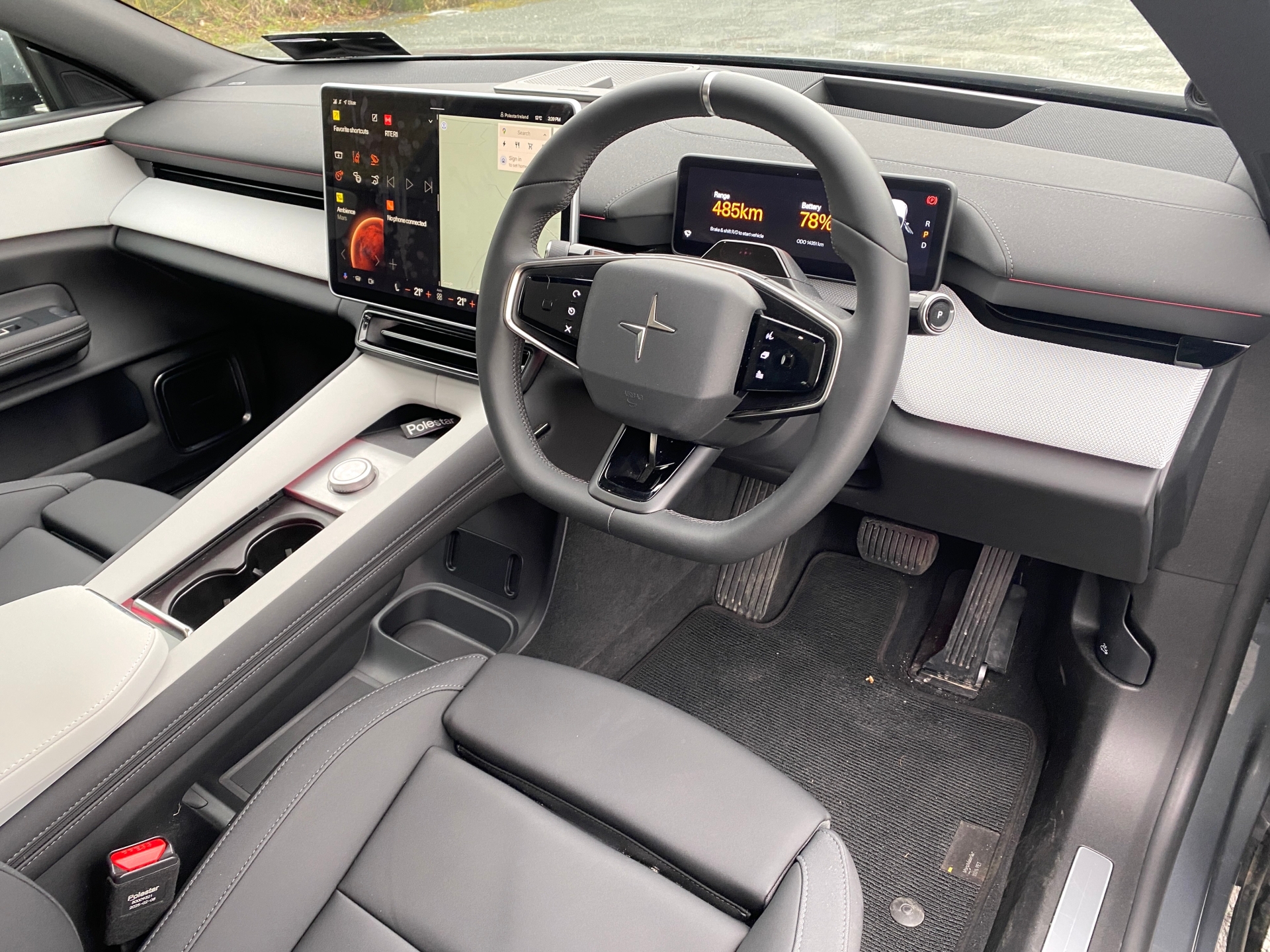 The interior is both luxurious and minimalist. Sumptuous seating and high-quality materials give a premium feel. The dash has no knobs or buttons. The split 16.4-inch screen display features a colourful rotating planet of your choice, which determines the interior lighting colour - I chose bright red/orange Mars. This interface is powered by Google Automotive, so it has Google Maps built in. It controls almost all of the car’s functions, even the opening of the tailgate or adjusting the side mirror settings, with quick access to key features like climate control, permanently located at the bottom of the screen. You can also opt to use Voice Control to change the car’s temperature, radio station, or to navigate to a destination.