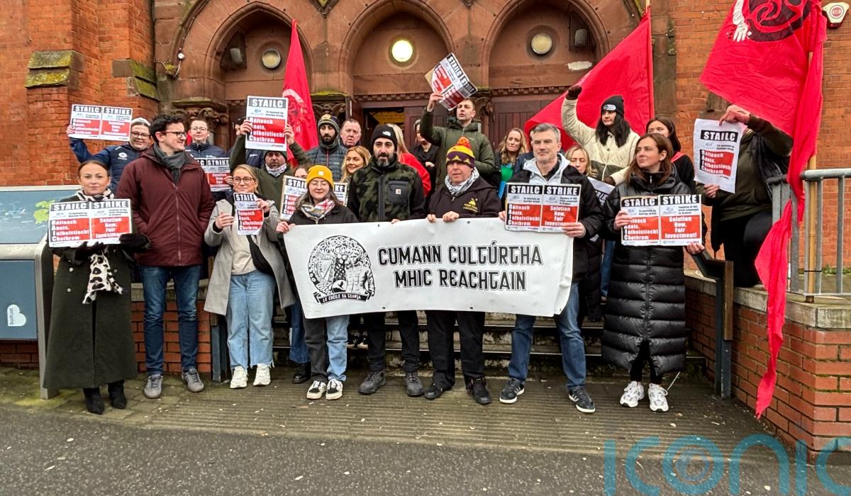 Irish language group workers took part in strike action across Ireland on Wednesday over a funding crisis.