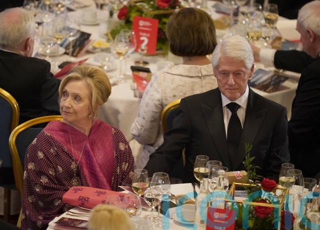 Mr and Mrs Clinton were among political and civic leaders from across the UK and Ireland – including Senator George Mitchell, Secretary of State Chris Heaton-Harris, Catholic primate Eamon Martin and former Irish presidents Mary McAleese and Mary Robinson – who attended a banquet at Belfast City Hall as part of the events on Monday evening.