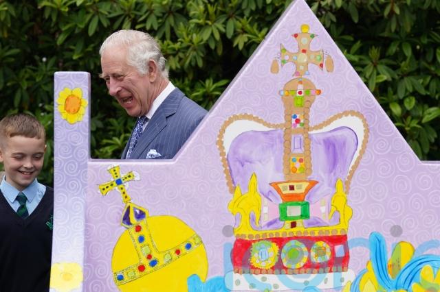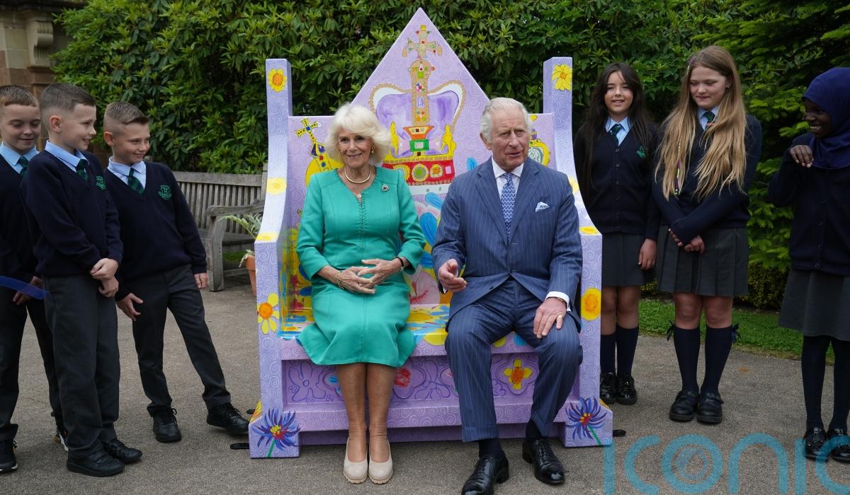 They met with pupils from a local primary school who have taken part in a competition to design coronation benches.