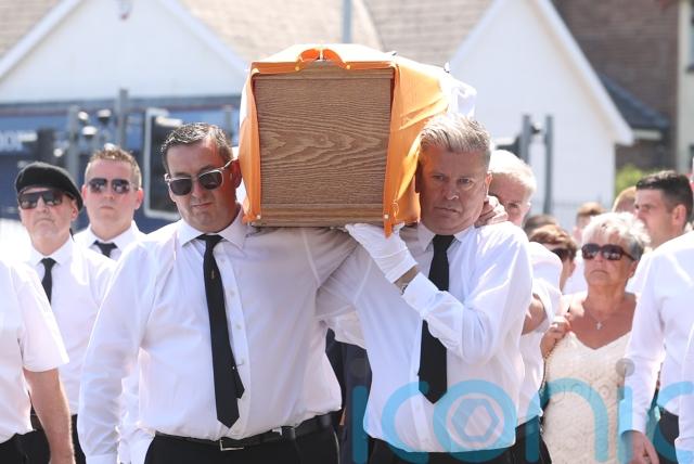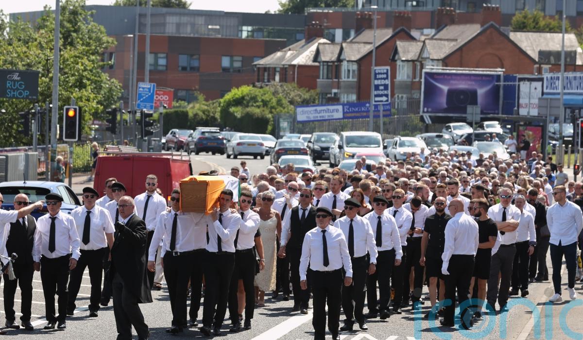Several hundred people gathered in the west of the city, including former Sinn Fein president Gerry Adams, for the funeral procession.
