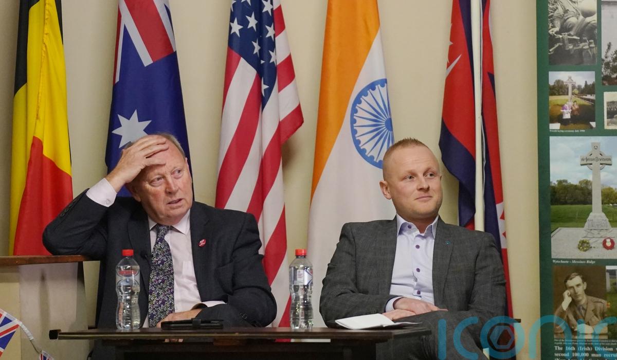 TUV leader Jim Allister and loyalist activist Jamie Bryson addressed the latest in a series of anti-Northern Ireland Protocol meetings at Conlig Orange Hall in Bangor.
