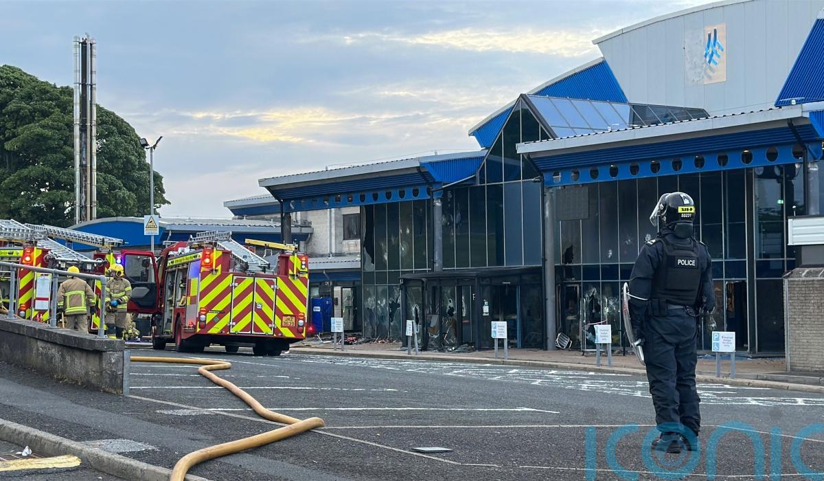 A fire broke out at Larne Leisure Centre following vandalism at the facility on the third night of disorder in Northern Ireland.