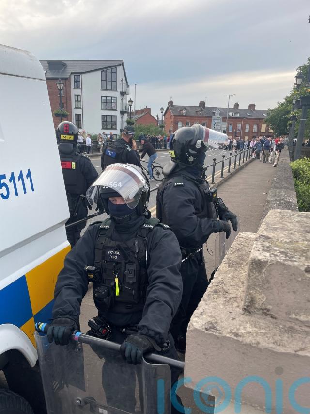 They came under sustained attack as those participating in disorder hurled petrol bombs, masonry and fireworks at police vehicles and officers standing nearby.