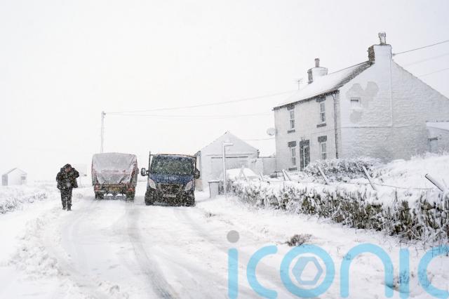 In the north of England, National Highways said the A66 was closed between the A67 near Bowes in County Durham and the A685 near Brough in Cumbria because of snow.