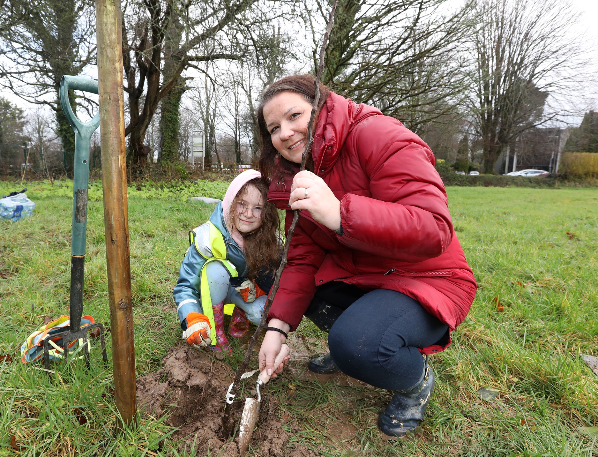 Jennifer Young and Sian Young, Sustainable Business and Corporate Affairs Director at Britvic Ireland pictured at Ballygowan’s Newcastle West facility as staff took part in an orchard planting event to mark Britvic’s ongoing commitment to biodiversity and sustainability.
