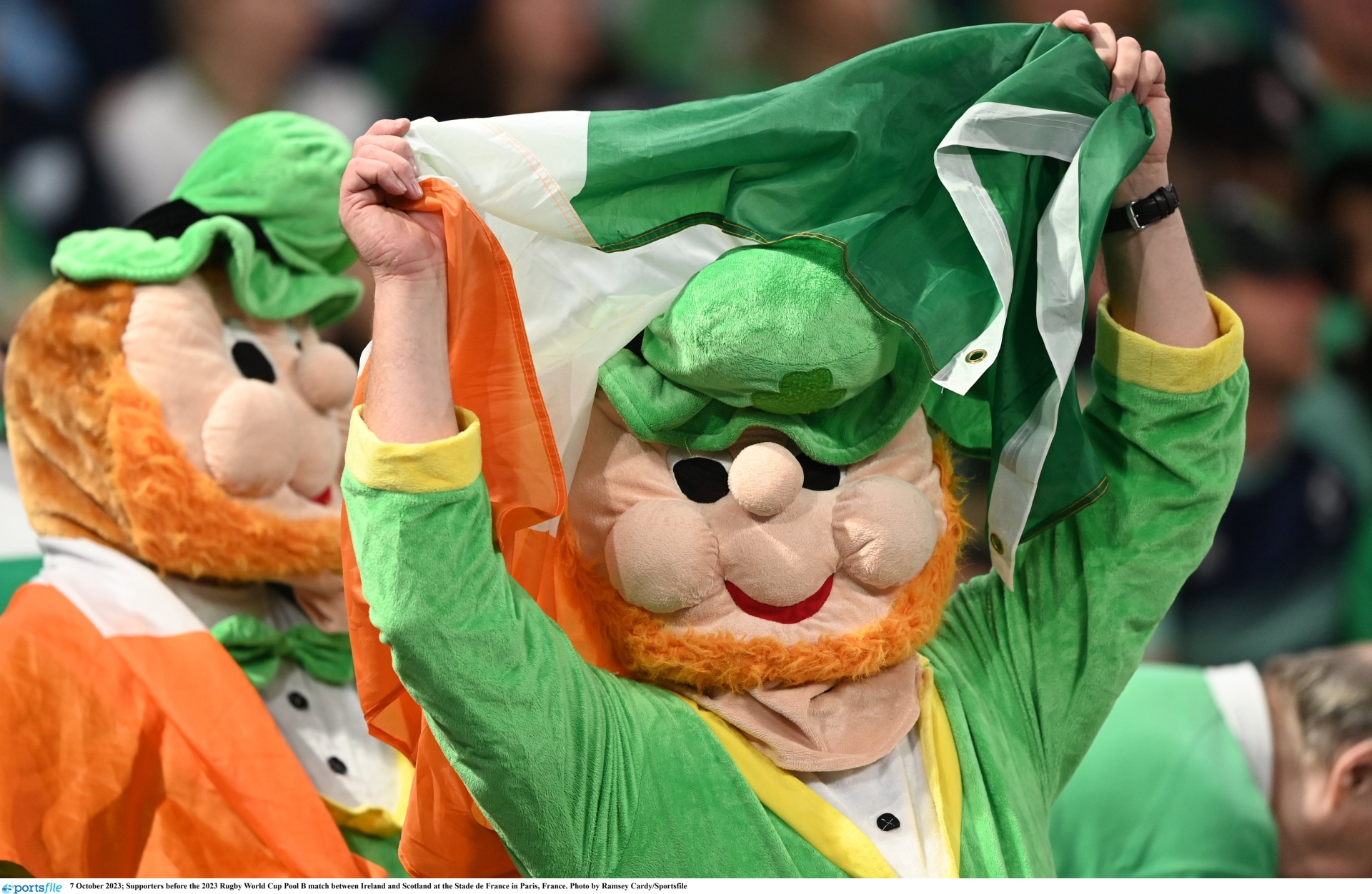 Rugby World Cup crowd pictures: Irish fans celebrate victory over Scotland in Paris