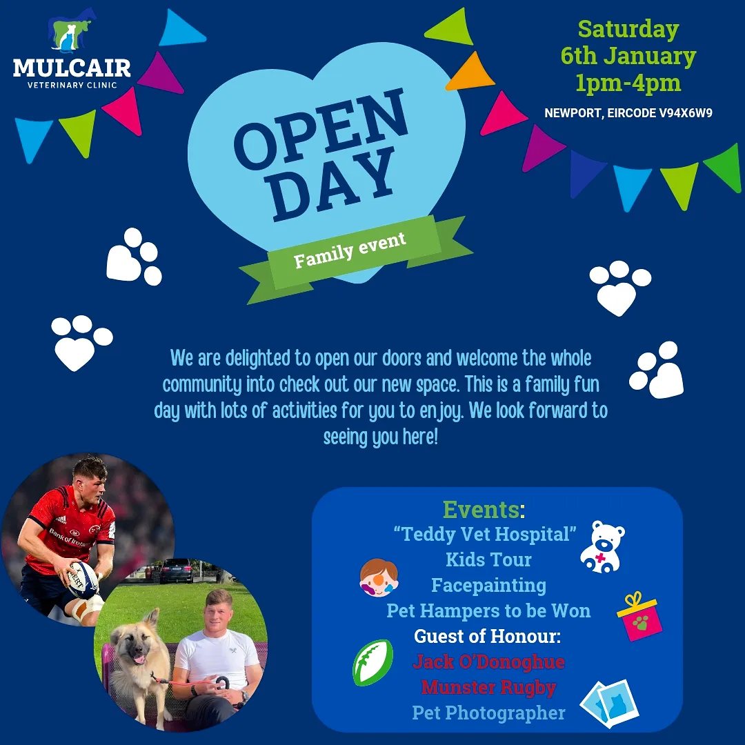 Mulcair Vets, a leading veterinary practice in county Limerick and Tipperary, is inviting the community to join them for an open day on Saturday, January 6, from 1pm to 4pm.