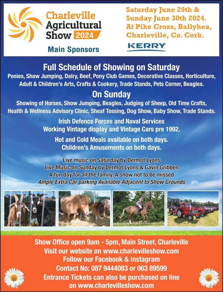 For further information on this year’s Show please contact the Show Office, Main Street, Charleville, Co. Cork