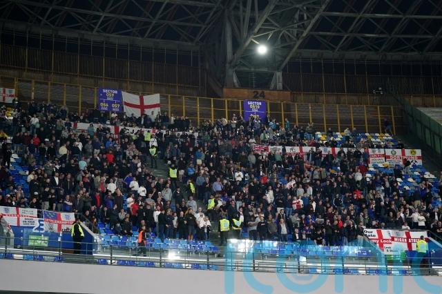 An England fan who displayed an offensive message on a St George’s Cross flag had his ticket cancelled before the Euro 2024 qualifier in Italy.