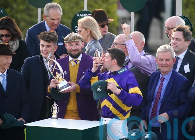 Successful at last month’s Cheltenham Festival, the nine-year-old was kept out of trouble throughout after starting as the 8-1 favourite, in a race that was delayed by around 15 minutes after protesters from Animal Rising got on to the track.