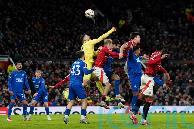 United seized control as Rangers faded. Garnacho turned Diallo’s cross onto the post before Maguire somehow sent a free header wide from Eriksen’s free-kick and Butland got down to keep out Ugarte’s header at his near post.