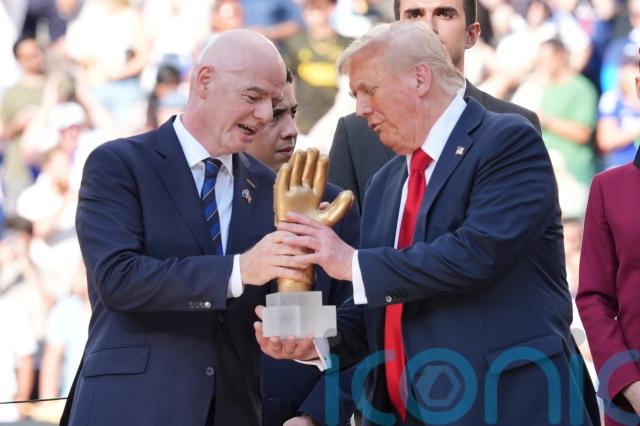 After handing the silverware to Chelsea captain Reece James, Trump was then invited to move out of the way by Infantino.