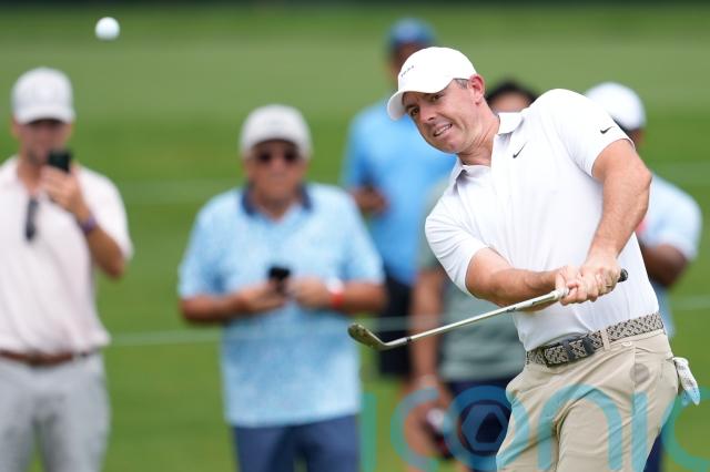 Rory McIlroy was five strokes off the lead, in a group which also included Sweden’s Ludvig Aberg, after completing a 64 with an unusual birdie in the final group.