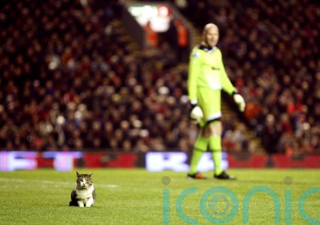 Liverpool’s home Premier League game against Tottenham in 2012 was temporarily halted when a cat casually walked across the pitch before making itself comfortable on the turf 11 minutes into the match. The grey and white tabby was carefully picked up by a steward and quickly became an internet sensation as the original ‘Kop cat’.