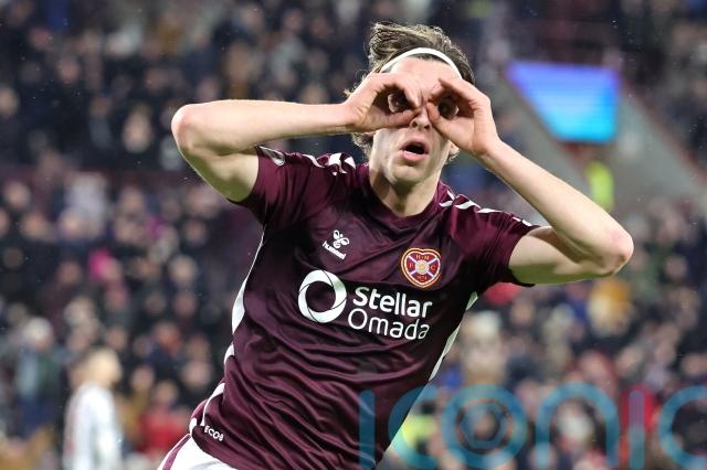 Hearts retained a six-point lead at the top of the William Hill Premiership as they overcame the early sending off of Beni Baningime to beat St Mirren 2-0 at Tynecastle. Lawrence Shankland and Tomas Magnusson scored their goals in the second half. Celtic moved back into second with a 1-0 win at Falkirk.