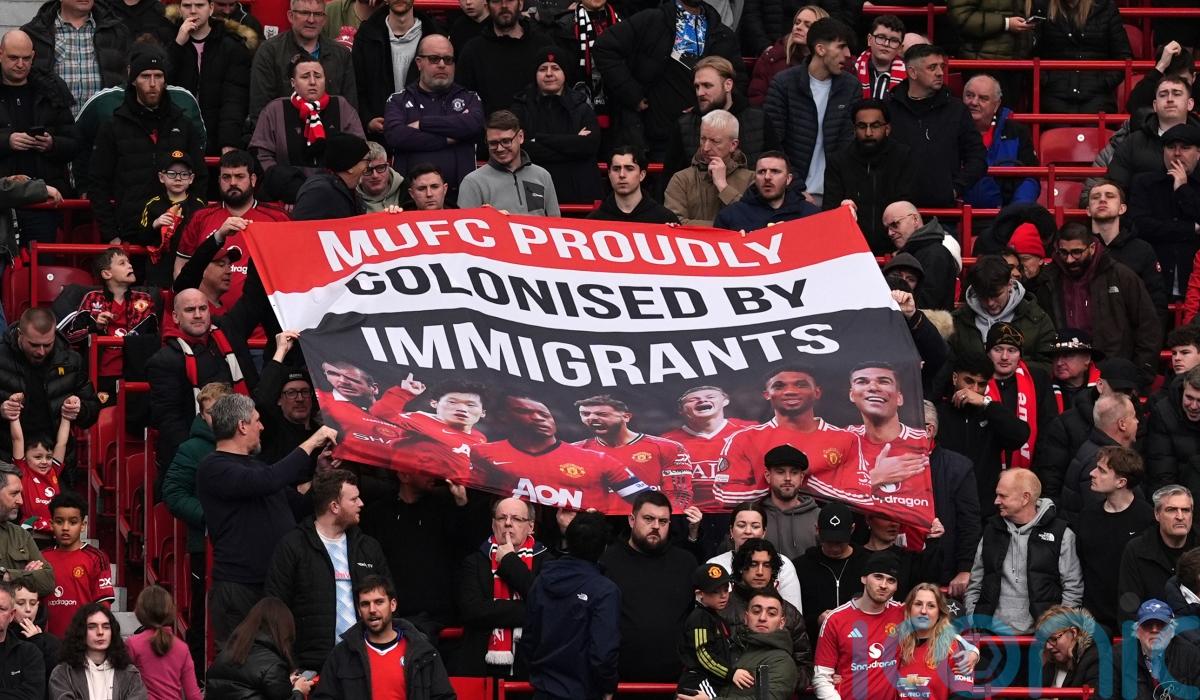 Manchester United fans displayed a ‘MUFC proudly colonised by immigrants’ banner at Old Trafford in response to a controversial interview given by the club’s minority owner Sir Jim Ratcliffe last month.