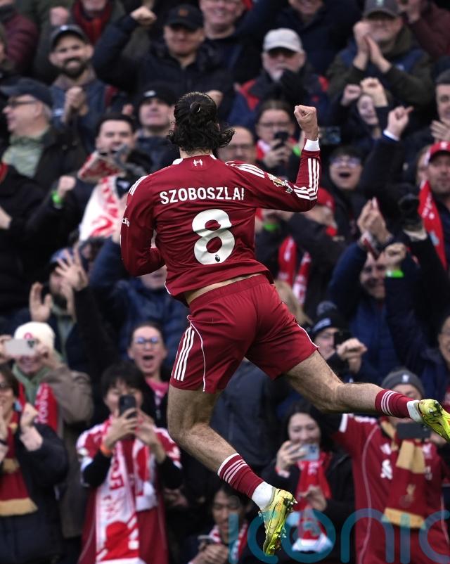 Szoboszlai eased the nerves with another 25-yard special which Vicario got a full hand to but could not keep out. He did better in tipping Ryan Gravenberch’s strike onto the post.
