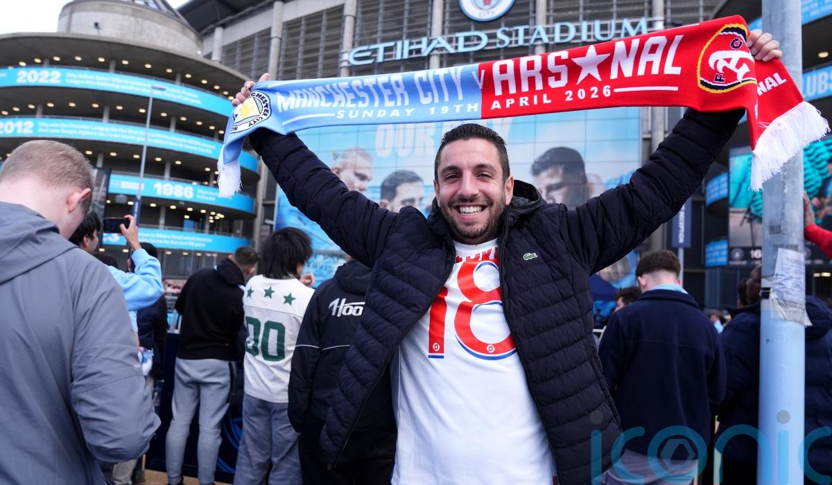 Arsenal-themed water bottles were on sale outside the Etihad Stadium as Manchester City fans ramped up the banter ahead of Sunday’s crucial title clash.